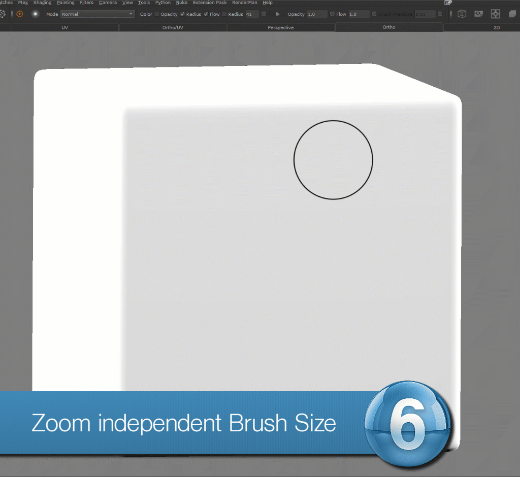Dynamic Brush Size adjusts the size of your brush tip dynamically based on how far you are away from your object, maintaining consistent brush sizes no matter if painting from far or close up.