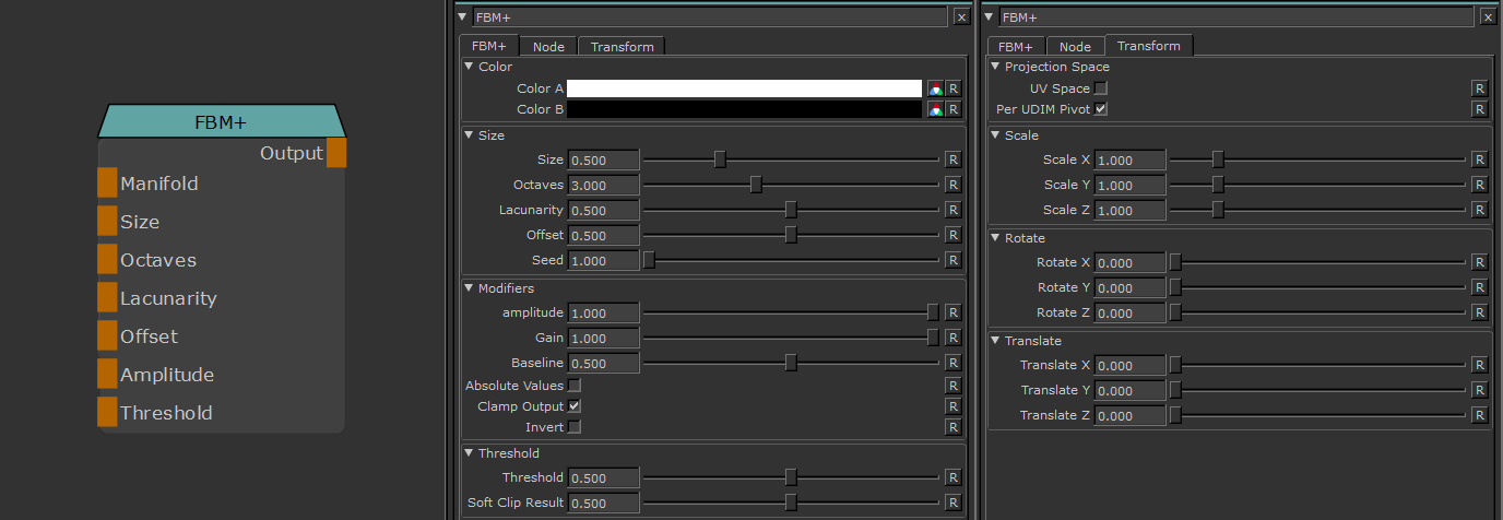Will apply an offset in X,Y or Z to your noise. When UV Space is turned on Translate Z is ignored.