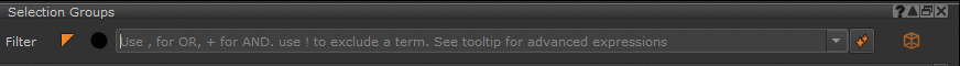 Entering Expressions and word searches will be the main way you interact with the visibility filter toolbar, to control what Selection Groups are made visible.