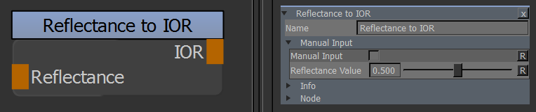 Reflectance to IOR will convert a Reflectance value to an IOR.