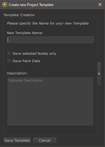 Specify the name of the new Template. Names need to be unique within the Template Save Path, meaning no two Templates can be named the same.