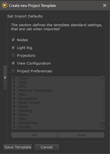 The Import Settings chosen here will be the ones used when automatically importing a template on project creation