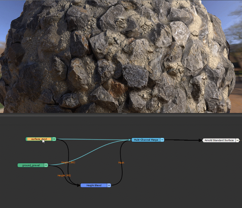 The result feeds into the Arnold Standard Surface shader.