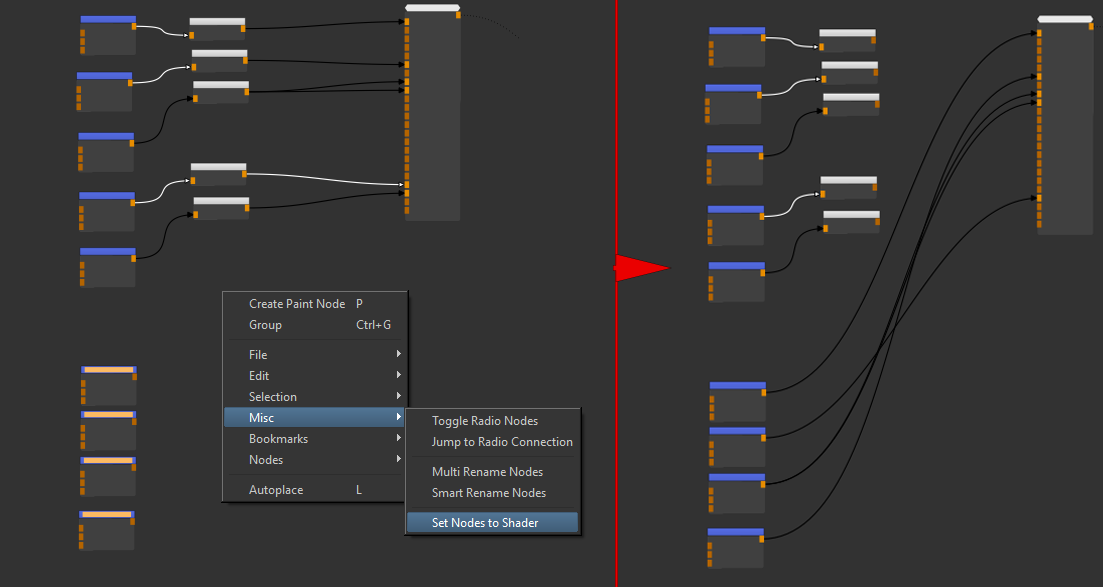 Set Nodes to Shader /  Reset Shader