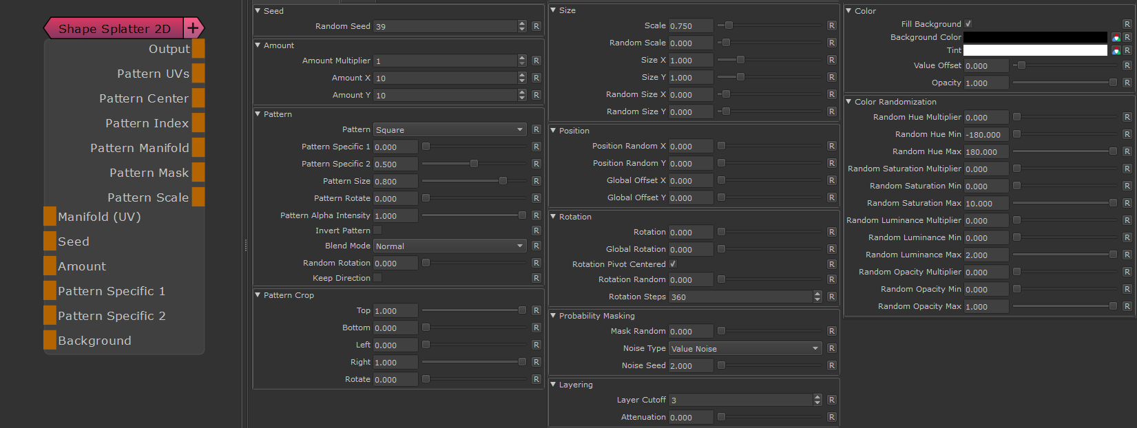 (Pattern UVs, Pattern Center, Pattern Index, Pattern Manifold and Pattern Scale)
