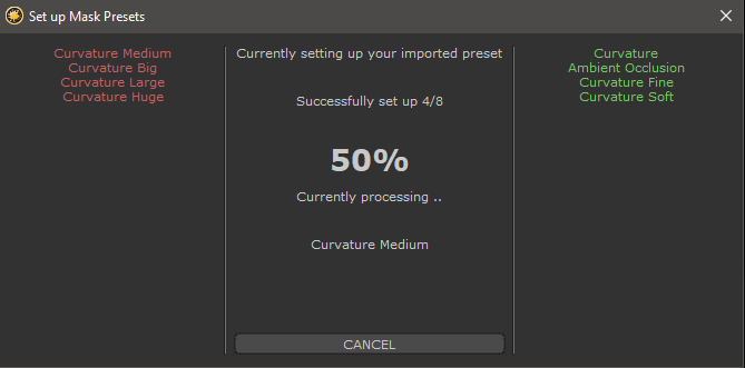 Confirm the Smart Mask Setup dialog. If it is the first time you are setting up a Smart Mask in your project you will see a Status Dialog processing the different Maps: