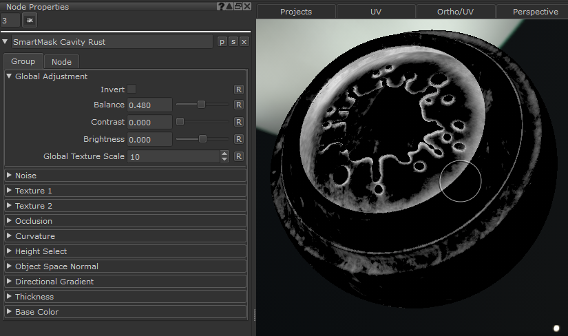 In this Example we will utilize the Mari Nodegraph to bring in a Smart Mask and configure it.
