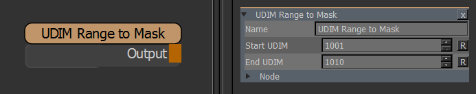 The UDIM Range To Mask Node outputs a black and white mask for a specified range of UDIMs