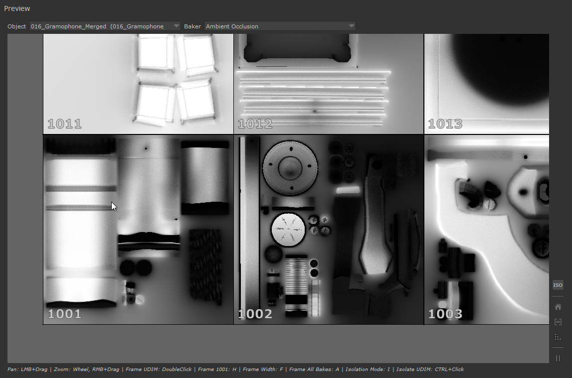 The isolation mode allows you to select which UDIMs to preview when executing a Preview Render, ignoring the set UDIM range on individual Bakers.