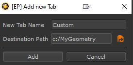 A dialog will appear asking you to specify a Tab Name and a Location on Disc where your Geometry is stored.