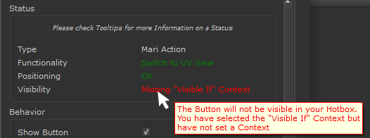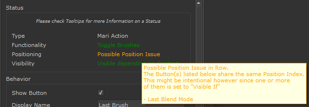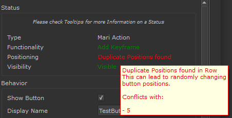 Conflicts in Button Positions are displayed in the Status Section with additional information displayed in the tooltip