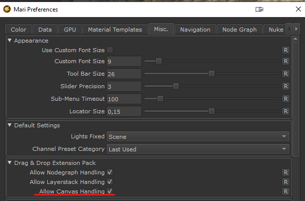 Dragging a .exr or .hdr file from the Shelf to the Mari Canvas will allow you to select its usage: