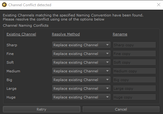 Example of new Channel Conflict resolve dialog