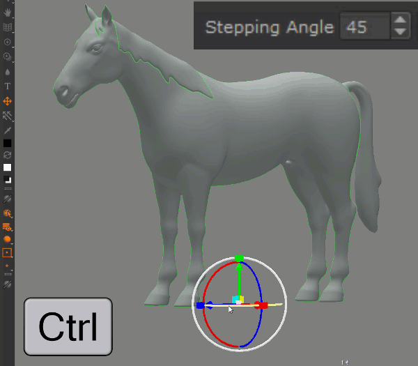 The Angle Snapping Value, when rotating the viewport gizmo while holding down CTRL, is now exposed in the Toolbar. Feature only available in Mari 4.7 or higher