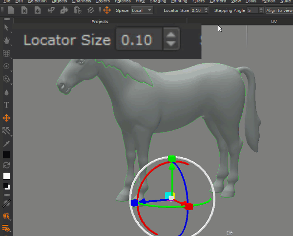 The Locator Gizmo Size Slider has been converted to a value spinbox