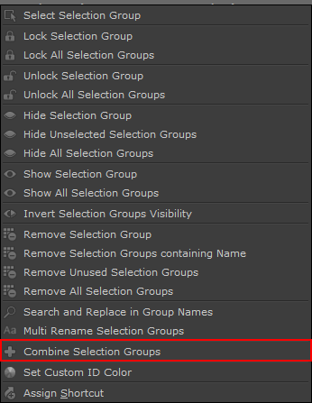 You can now combine Selection Groups into a new Group via the new right mouse click "Combine Selection Groups" Option found in the Selection Groups Palette.