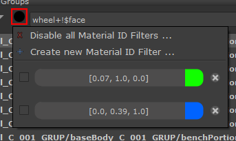By default Material ID Filters will be auto-named with the Color Values e.g. "[1.0,0.0,0.0]" for a Red Material ID Filter.