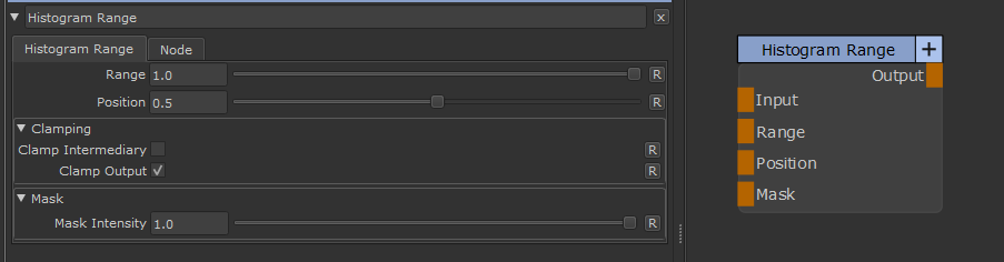 The Histogram Range Node allows you to adjust the range and position of the input histogram.
