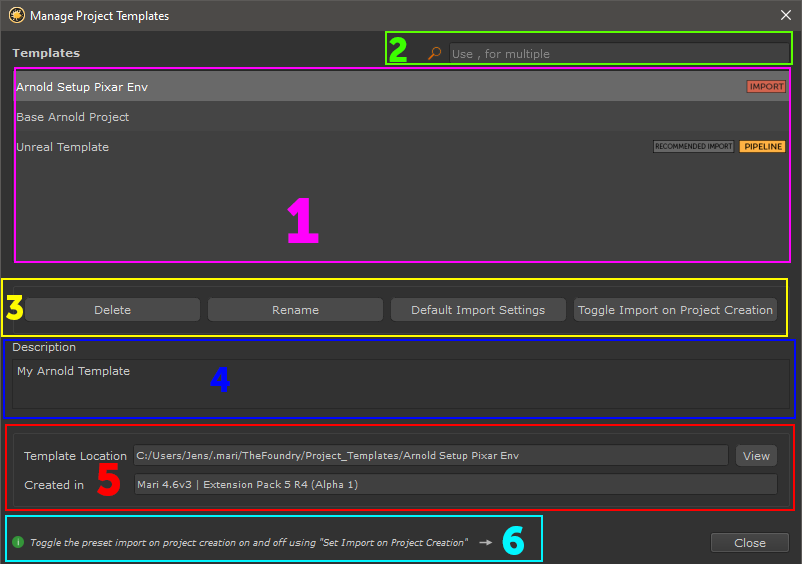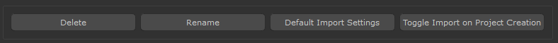 The Manage Project Templates Dialog allows you to Delete & Rename Presets, change their Default Import Settings and