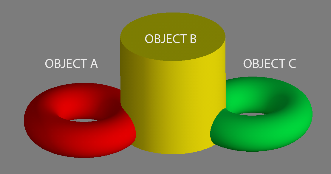 •If Object C is baked as a lowdef object at the same time as Object A, it would receive Occlusion from Object B as well.