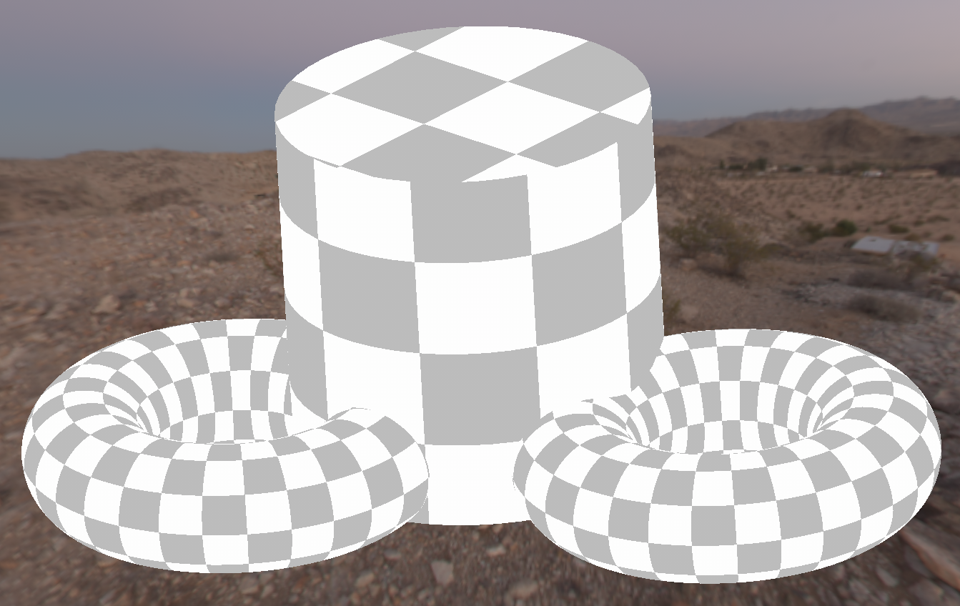 •Here we have our three mari objects. The Cylinder is intersecting the torus on each side