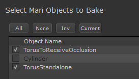 Below you can see a combined Mari Object baked with an occlusion. It is all one single object in the mari object palette.