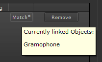 •The Match Button will be suffixed with a * and the link is now active. The tooltip will show the current matching