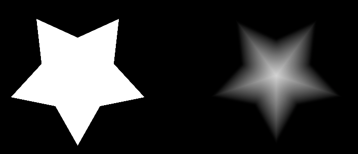 Example of the same polygon with different Gradients. (Left) Gradient Disabled (Center) Gradient Radius = 0.1 (Right) Gradient Radius = 0.25