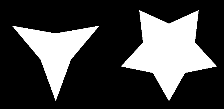 Example of the same polygon with Sides = 3 (left) and Sides = 5 (right)