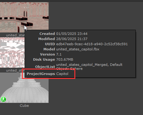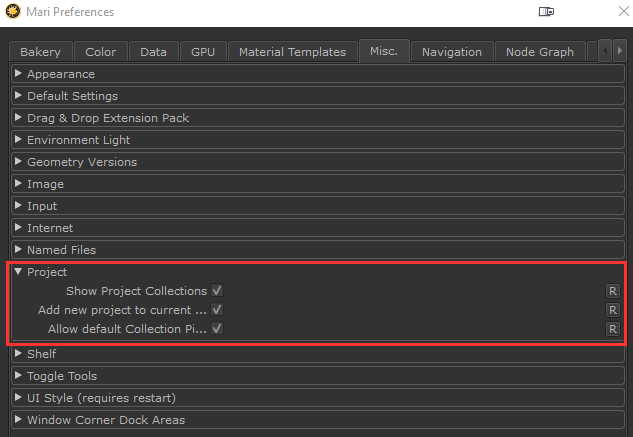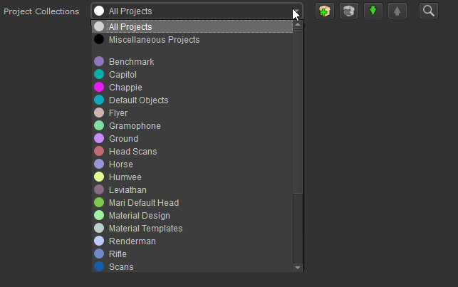 Different from a "grouping" system, collections allow you to add a Mari Project to multiple collections |