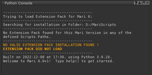 file exists in your Mari scripts folder but no valid subfolder is found where Extension Pack is in.