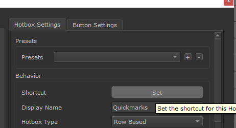 Ctrl + Click on a button to set a quickmark or overwrite an existing one. The button will turn blue indicating a quickmark is set