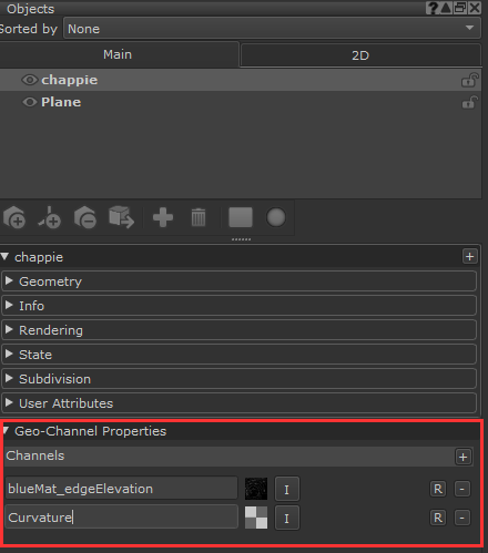 Geo Channels are located on the Object in the Objects Palette