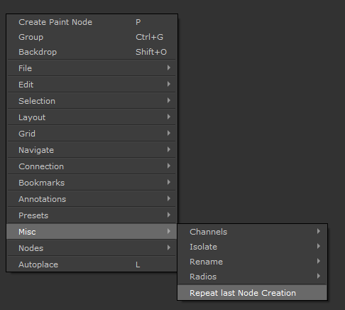 NodeGraph / Right Mouse Click / Misc /