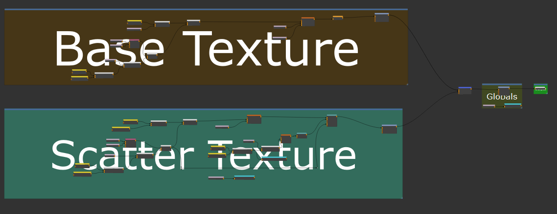 It is useful to always maintain a consistent scale relationship between the Base Texture and Scatter Texture Group (e.g. Base Texture should always be twice the size of scattered features)