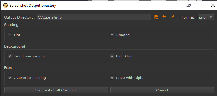Defines if to take screenshots with a flat/constant shading or with a lambertian diffuse shading model.
