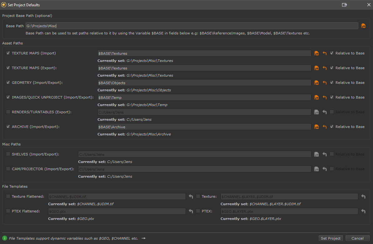 Project Paths allows you to configure default paths & file naming templates for different operations inside of Mari