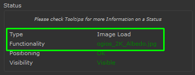 Once the an image is selected the Status Group in the Button Settings will display the Image File Name