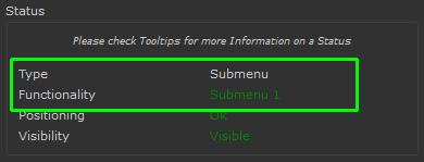 Once the a submenu is selected the Status Group in the Button Settings will display the target Hotbox Name