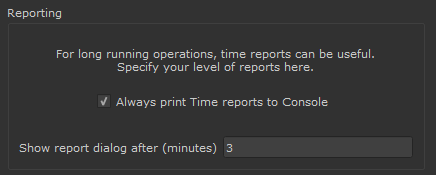 The Show Report Dialog after Setting determines the Number of Minutes of Processing the Setup needs to take in order to display a Report Dialog at the end.