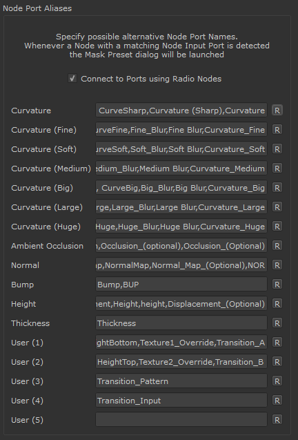 The Node Port Aliases Section defines Port Names that trigger the Smart Mask Setup Tool dialog to open when it detects a node with at least one specified Alias
