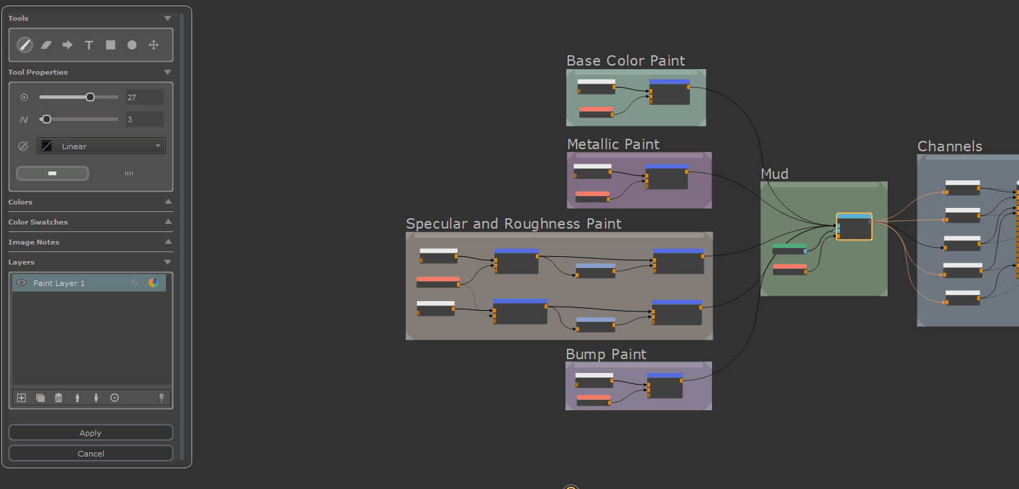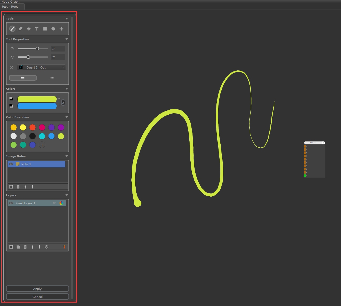 A new Menu will overlay the Nodegraph and the Nodegraph itself will be turned into a paint canvas