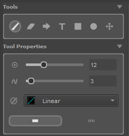 Tools come in two categories - Vector Shapes & Paint Tools.