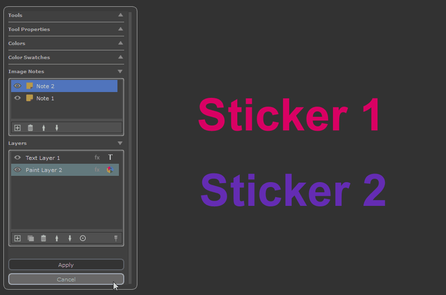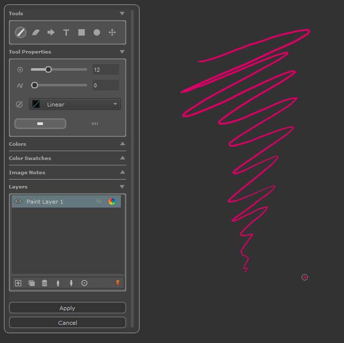 •Switching Layers or Image Notes will commit the active paint buffer to the selected layer before the switch is performed