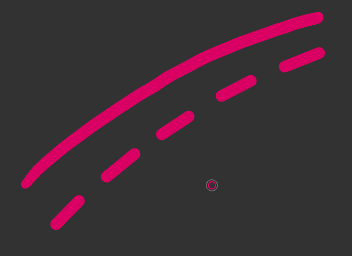 A solid stroke (top) vs a dashed one (bottom). Here illustrated on a regular Paint Brush instead of the Eraser