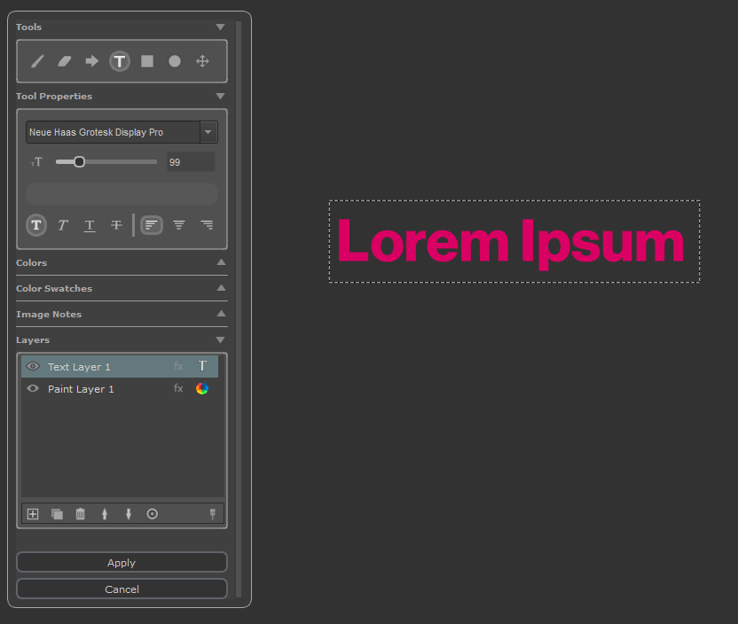 Paint Layers can hold pixel data created or modified by the Paint Brush Tool, Eraser Tool and Arrow Tool.![]()