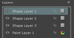 A shape layer is indicated by its square icon. A shape Layer holds vector items such as polygons or ellipses. A shape Layer can hold exactly one vector item.