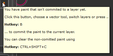 Paint added via e.g. the Paint Tool or Arrow Tool first sits in the "Paint Buffer" before it gets baked down onto a Paint Layer
