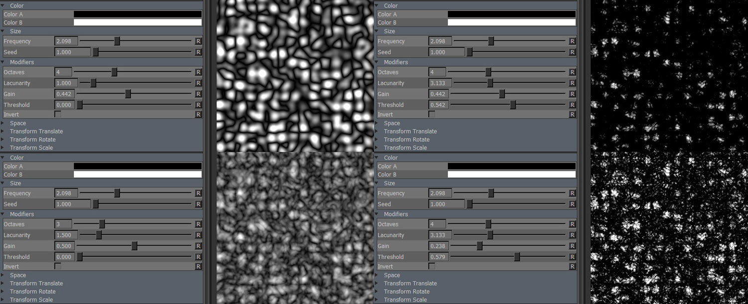 Describes the level of detail of the noise. Detail is created by encapsulating the modifiers below into a loop and